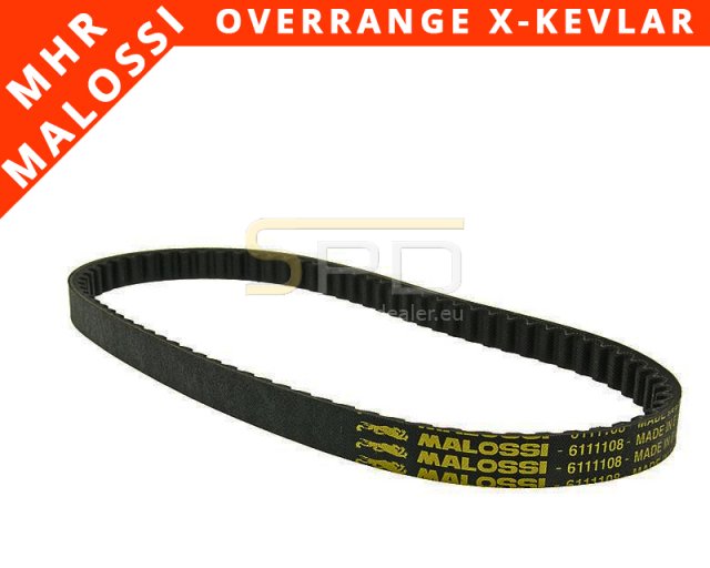Raktárról rendelhető a Malossi MHR Overrange X-Kevlar variátor ékszíja hosszú Minarelli motoros robogókhoz. Speciális kialakítású kifejezetten a nagy szíjtárcsás rendszerek mellé kifejlesztett extra erős variátorszíj. Felszerelés előtt mindenképp ellenőrízzük a hátsó szíjtárcsa állapotát. Amennyiben az ékpályán berágódás található, úgy azt célszerű minél hamarabb kijavítani, cserélni mert nagyban rövidítheti az ékszíj élettartamát.