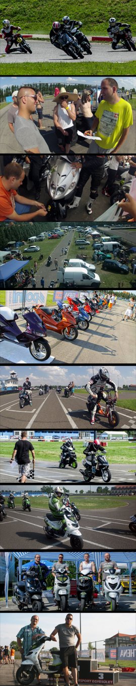 A két csak félig átaludt éjszakának köszönhetően a vasárnap reggeli ébredés már kevésbé volt gyorsnak nevezhető. Idővel azért beindult az élet és sok olyan új látogató és versenyző / csapattag érkezett aki a gyorsulási versenyben volt érdekelt. Napközben megrendezésre került a sokak által nagyon várt gyorsulási verseny, ahol rengeteg egyéni, és több csapat szinten működő induló állt a rajtvonalhoz. A verseny érdekes volt, sok verseny a papírforma szerint zajlott, de azért akadtak bőven olyan futamok is amiknek a végeredménye meglepetésként érte a résztvevőket, és a nézelődőket is. A verseny befejeztével kicsit felpörögtek a dolgok, hiszen a vártnál több indulónak köszönhetően a programterv csúszott. A szépségverseny következett, ahol a rendezvény történetében a legmagasabb számú induló tolta a kijelölt helyre a motorját. Rengeteg gyönyörű robogó volt, így a végleges döntést nem volt egyszerű meghoznia a zsűrinek.