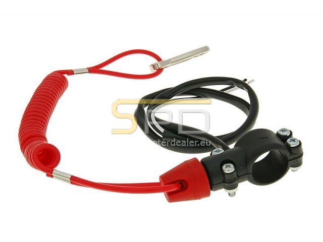 SPD Racing Kill-Switch - (Racing edition) gyújtás megszakító. Bizonyára sokak számára ismerős ez az apró kis szerkezet, a vízi sportokban jártasaknak egészen biztos, hiszen a Jet-Ski-ken ugyanilyen biztonsági leállítót használnak. Bukás esetén abban a pillanatban ahogy a kupak lehúzásra kerül a kapcsolóról, a gyújtás megszakad, melyek következtében leáll, így elkerülve az esetleges további sérüléseket, illetve a motor károsodását. Minden csoportnak ajánljuk, hiszen nem csak nagyon hasznos alkatrész, hanem optikai tuningként is remekül használható. Ez a modell már kormányra szerelhető kivitelben érkezik.