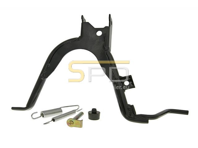 SPD Original középsztender mely használható az összes olyan fekvőhengeres Minarelli motorblokkal szerelt robogóhoz, melynek a hátsó kereke 13 coll átmérőjű. Amennyiben a gyárilag felszerelt alkatrész tönkrement, vagy esetleg úgy vásároltuk már robogónkat, hogy csak oldalsztender volt rajta, úgy ennek a terméknek a segítségével könnyedén visszaállíthatjuk robogónk ezen részének gyári állapotát. Jó minőségű, igényes kialakítású kivitel, mely paramétereiben teljesen megegyezik a gyárilag felszerelt komponenssel. A csomag tartalmazza az összes olyan alkatrészt amelyre a felszerelés során szükségünk lehet.