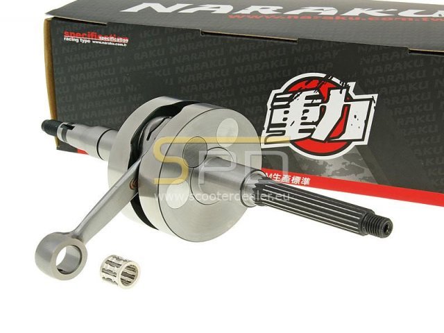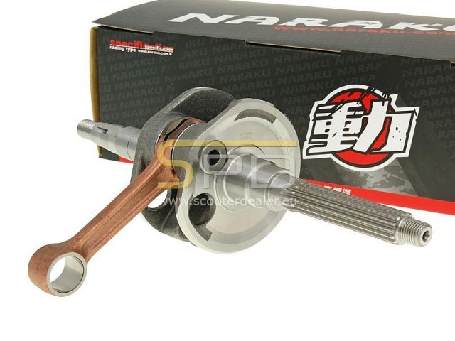Naraku Performance Racing főtengely 100ccm-es Minarelli motorral szerelt robogókhoz. A termék egyaránt használható a gyári, illetve a 124ccm-es BigBore hengerszetthez is.