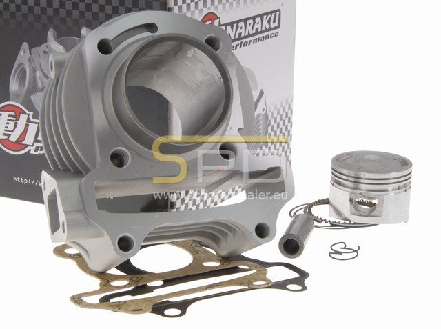 Naraku Performance 50ccm-es öntöttvas hengerszett. Az alkatrész teljesítménye minimálisan magasabb (3-5%) a gyárilag felszerelt darabnál. Magas minőségének, illetve pontos megmunkálásnak, valamint a dugattyún található kifejezetten a bejáratáshoz kifejlesztett bevonatnak köszönhetően a legtöbb hengerrel ellentétben itt nem szükséges 4-500 kilométert járatni, hanem elegendő csupán 1-200 finoman megtett kilometer. A szett a hengerfejet leszámítva tartalmazza az összes olyan alkatrészt amelyre a felszerelés során szükségünk lehet. A gyári hengerfej természesen maximálisan megfelelő ehhez a szetthez is.